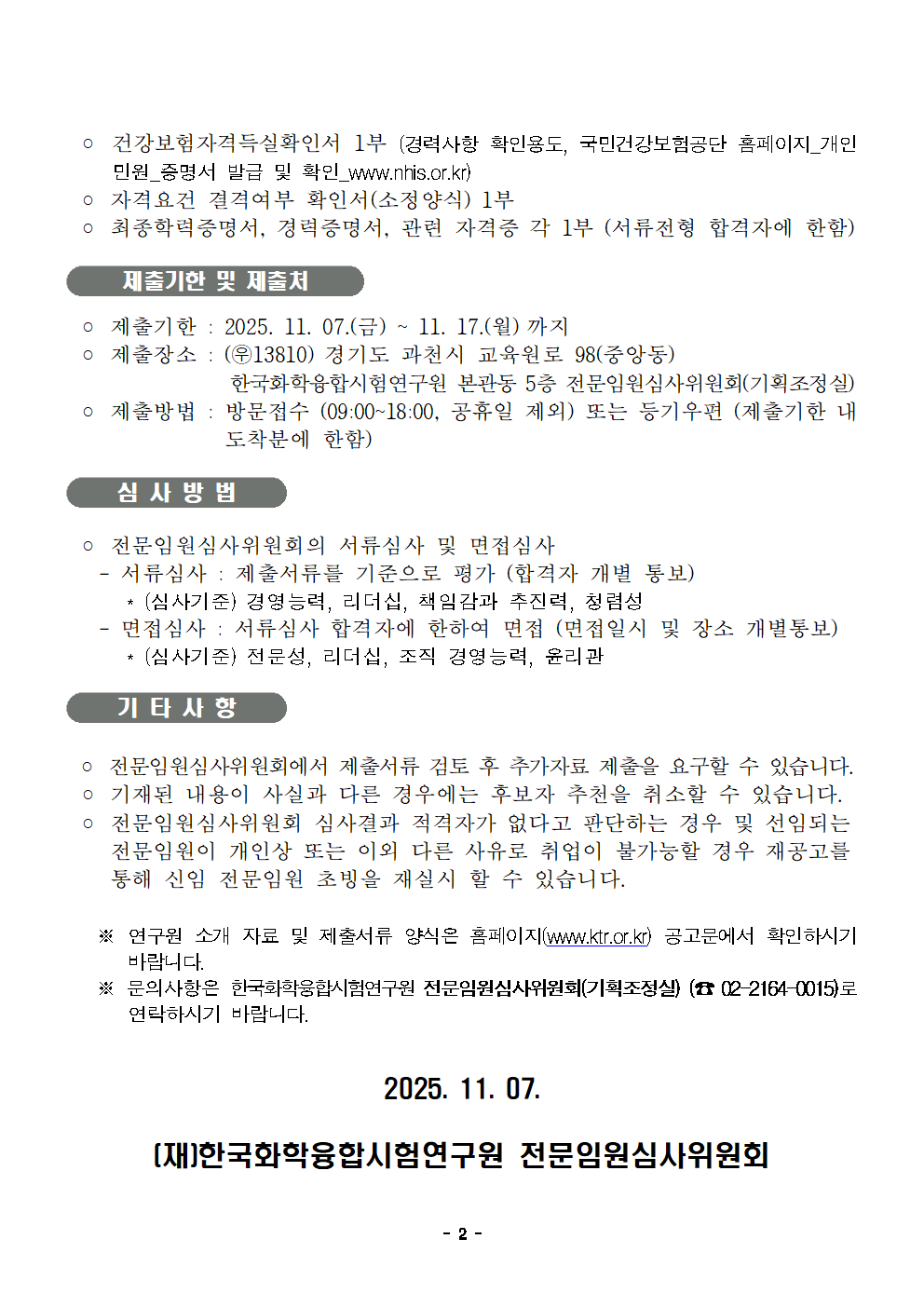 2025년 하반기 한국화학융합시험연구원(경력,...