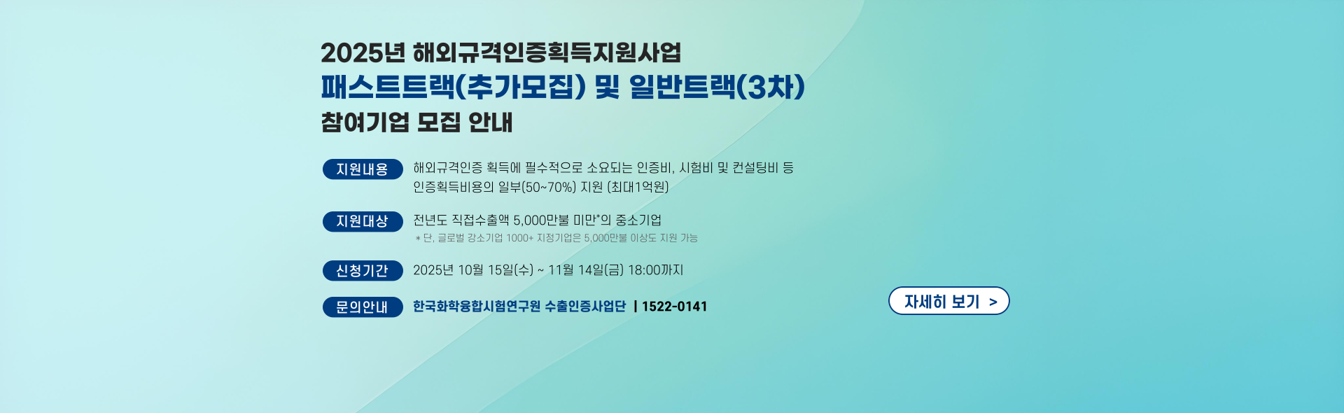 해외규격인증획득지원사업 패스트트랙 및 일반트랙(3차) 모집